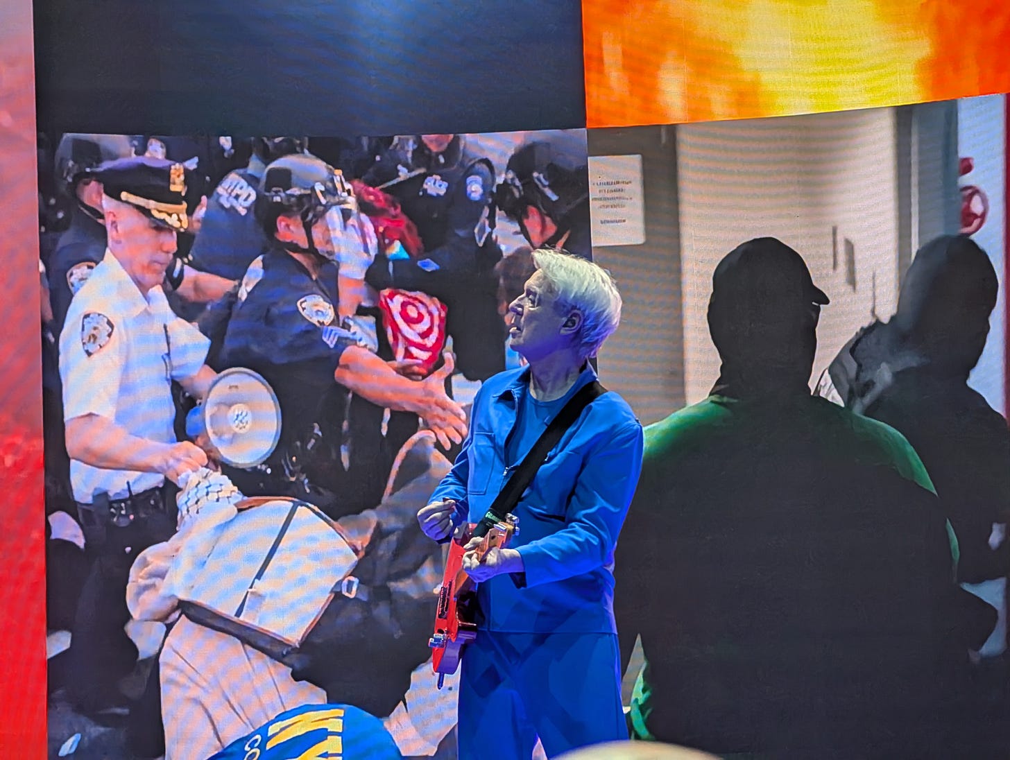 [David Byrne playing “Life During Wartime” live, Washington DC, September 28, 2025. Author’s photo]